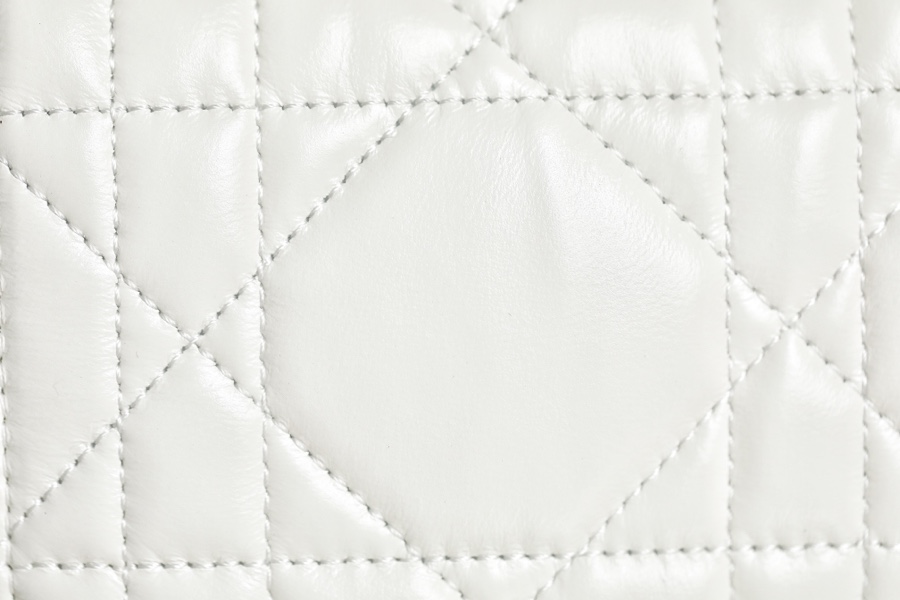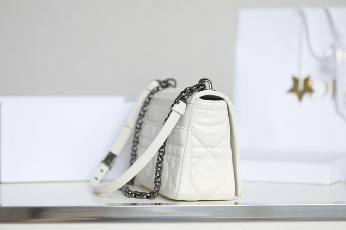 The Dior Caro handbag combines elegance and modern style. Carefully made of white cow leather, with original quilting effect and oversized cannage pattern topstitching, it is unique. The flap is finished with a metal-coated knob-style “CD” clasp, inspired by the closure of Christian Dior perfume bottles. Medium style, equipped with a detachable “CD” logo chain shoulder strap, which can be carried by hand or on the shoulder, or can be replaced with Dior’s embroidered wide shoulder strap to embellish daily looks or add a bright finishing touch to evening wear.