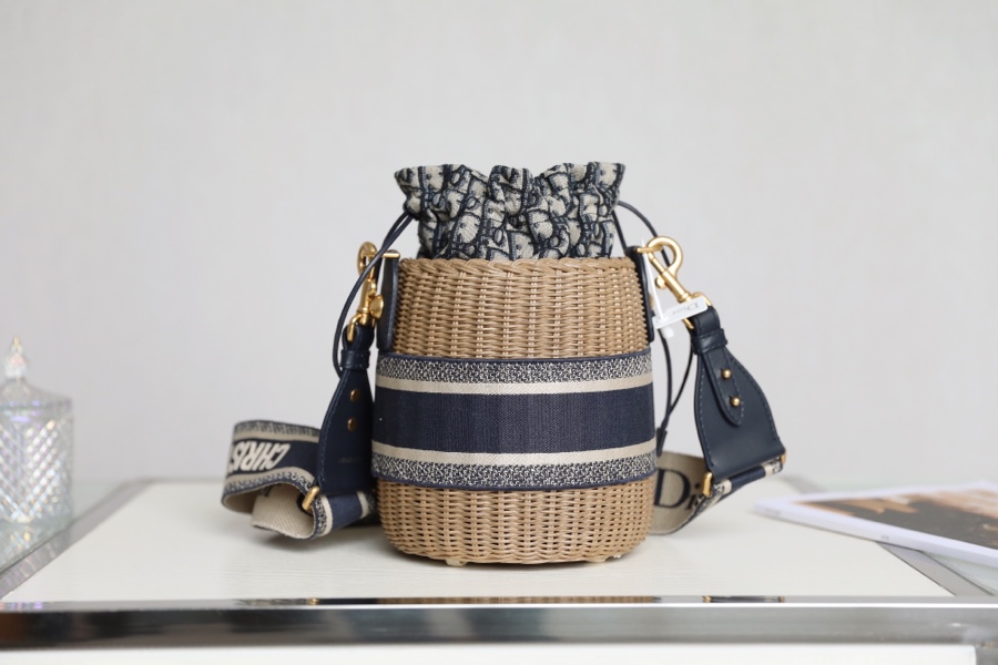 Dior 1:1 Bucket Bags Blue Embroidery Weave Oblique