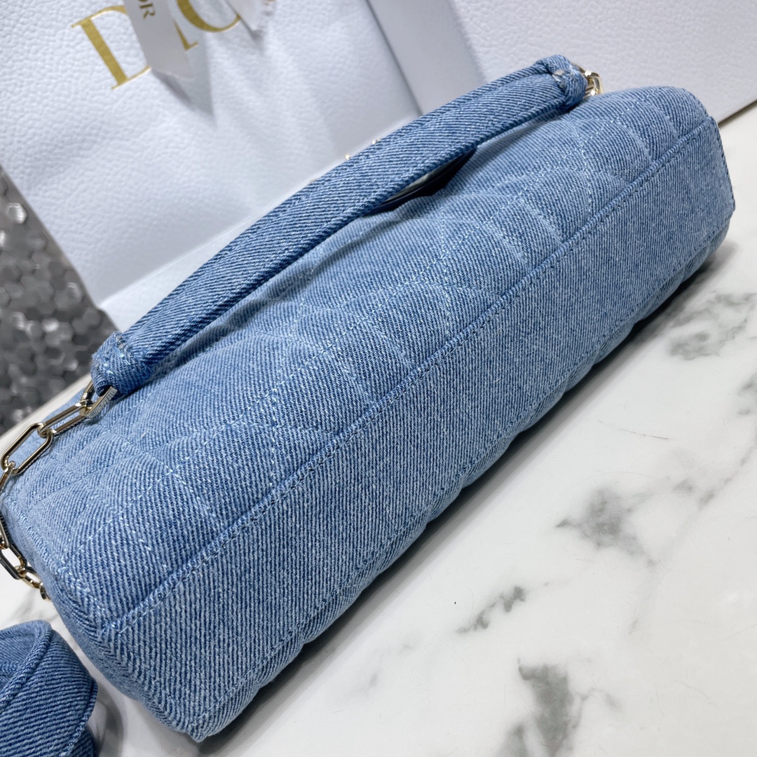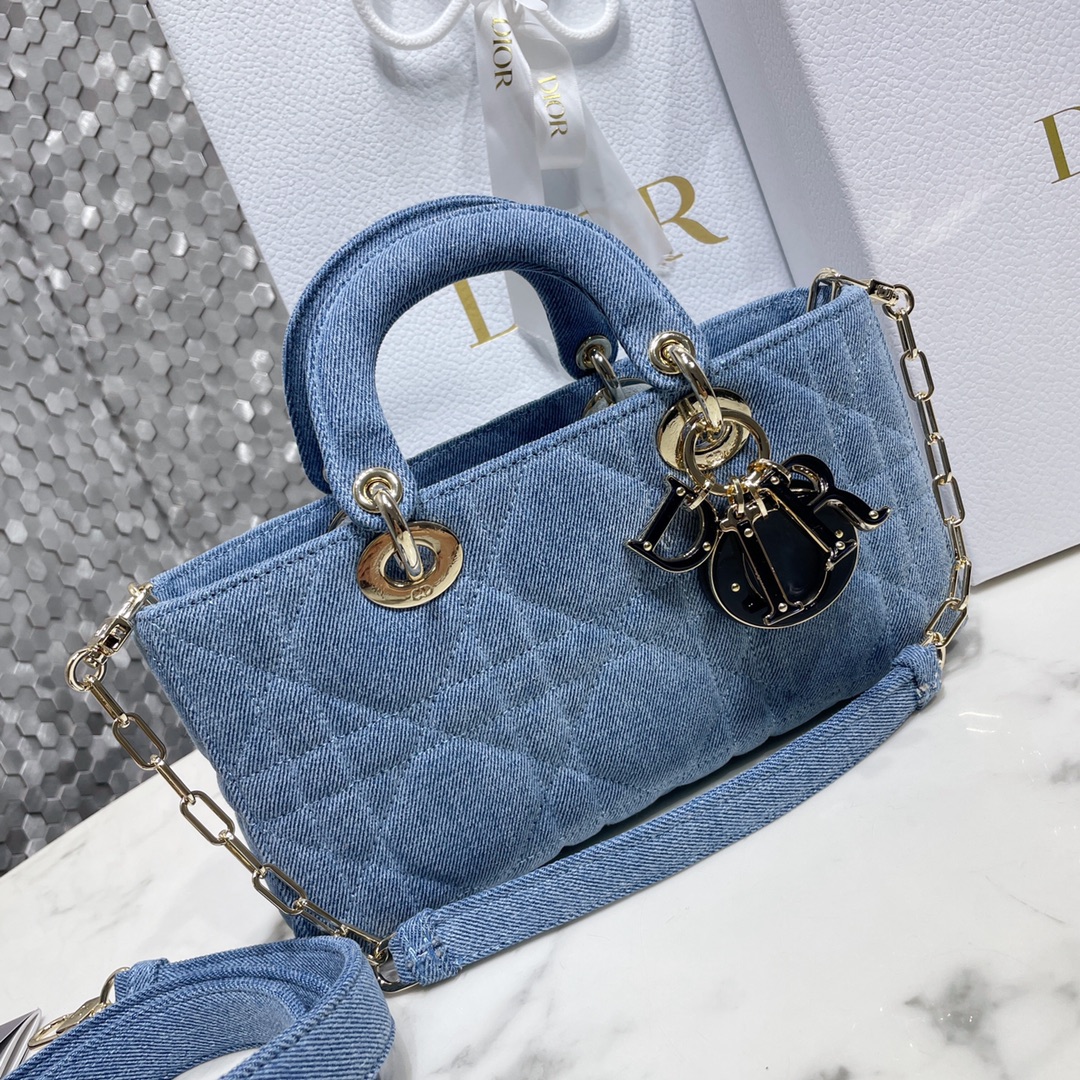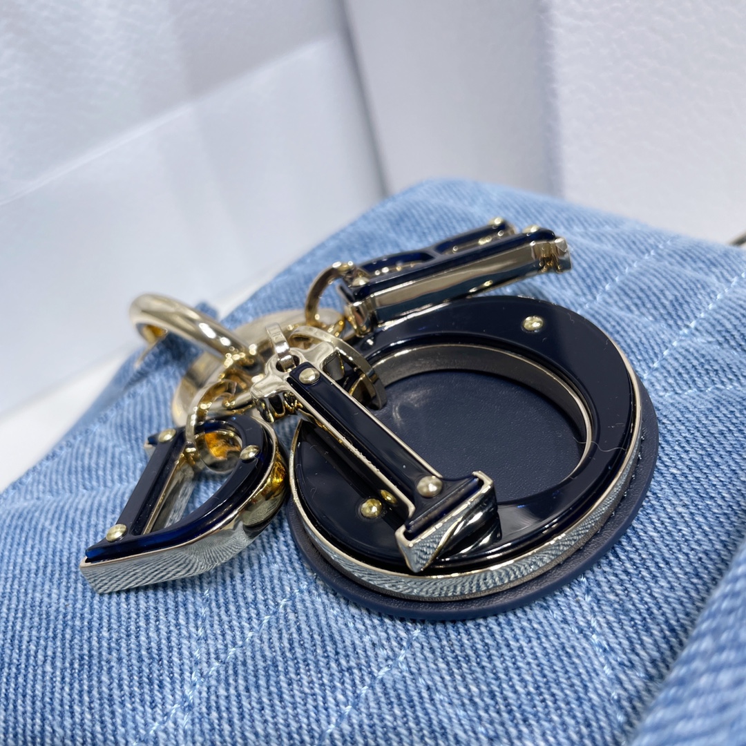 The Lady D-Joy bag epitomizes Dior’s deep insight into elegance and beauty. Stylish and elegant design is timeless. It is carefully made of blue denim, decorated with cannage pattern topstitching, and embellished with a lake blue transparent resin “D.I.O.R.” pendant, echoing the pop style of this series. Featuring a removable chain shoulder strap and an adjustable, removable denim shoulder strap, it can be worn by hand or cross-body, making it ideal for everyday styling.