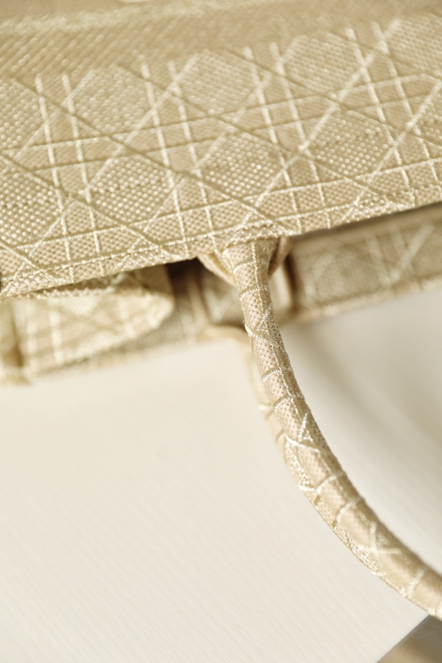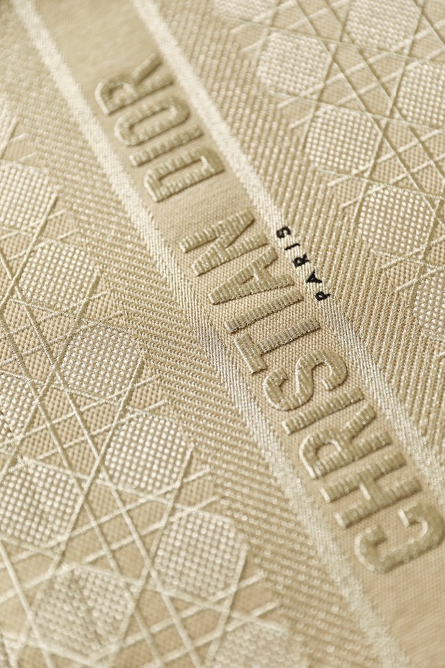DIOR TOTE Apricot Metal Thread Cannage Embroidery