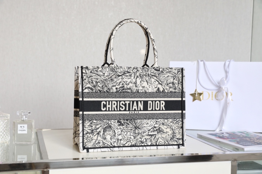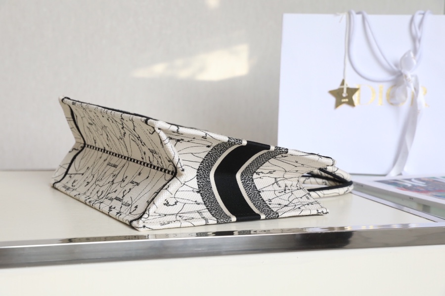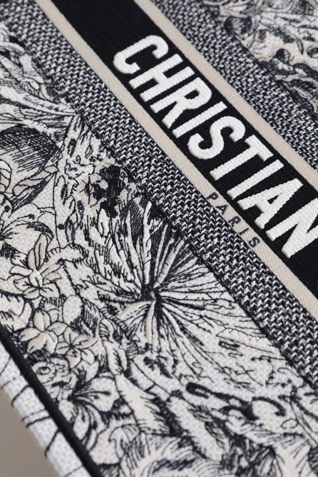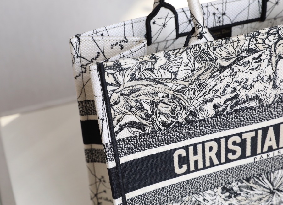 Dior Book Tote Handbags Tote Bags Black White Embroidery