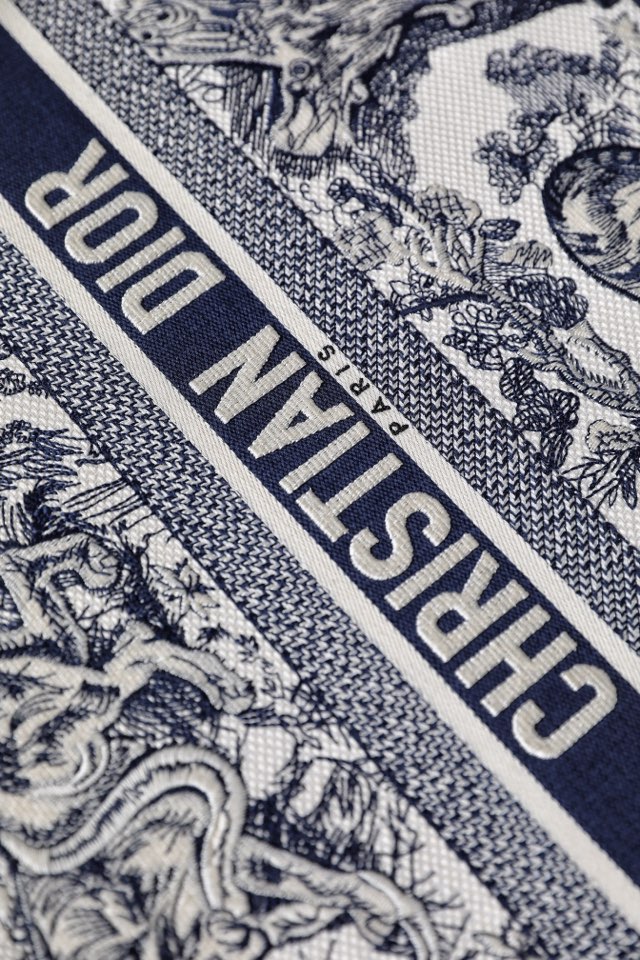 This medium tote bag is specially designed for carrying daily necessities, with all-over embroidery and blue Toile de Jouy Pattern with “Christian Dior” signature on the front. This tote bag from the Dioriviera collection embodies exquisite craftsmanship and can be paired with other small accessories or Mitzah scarves to create a seamless look.