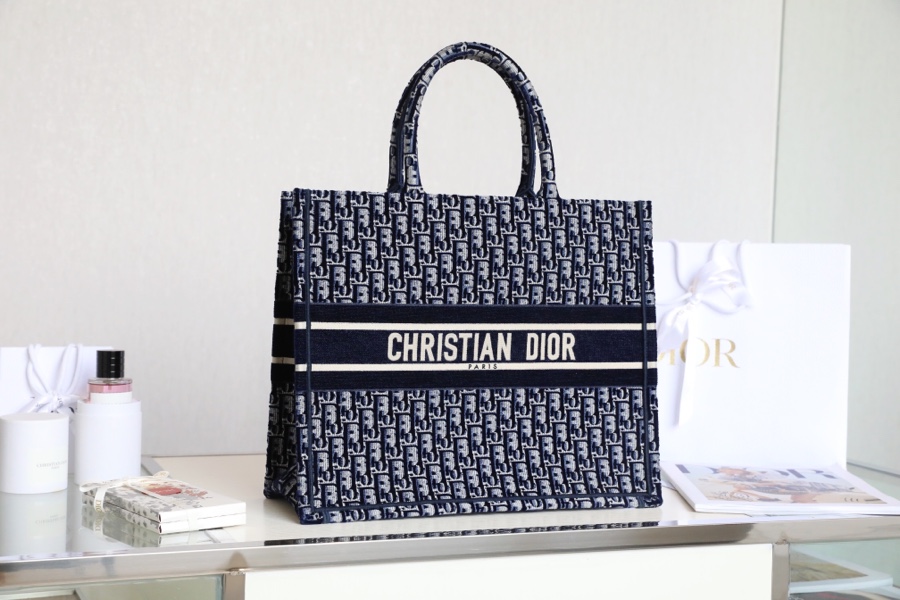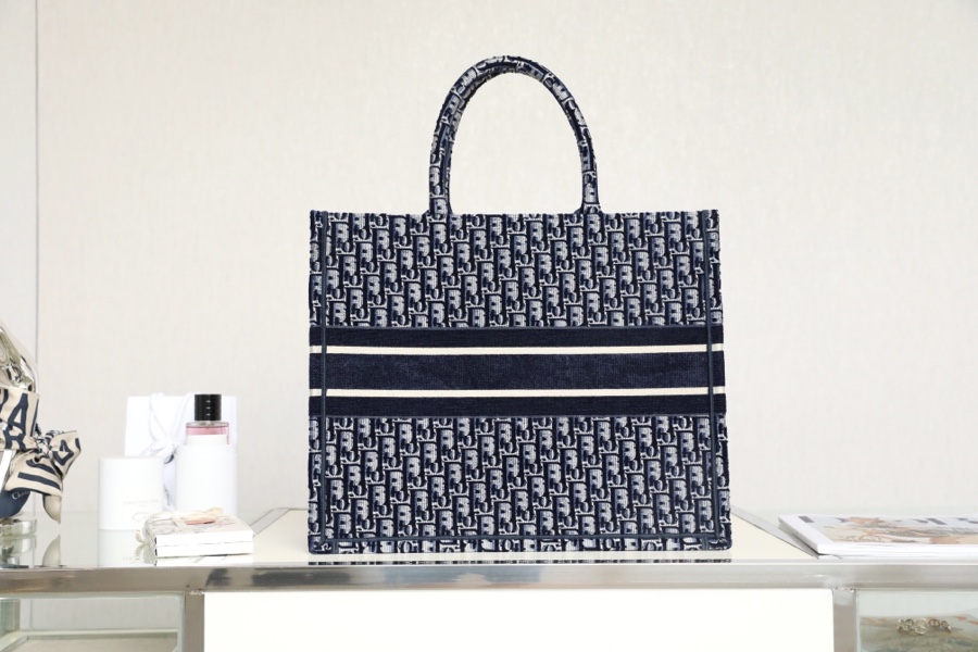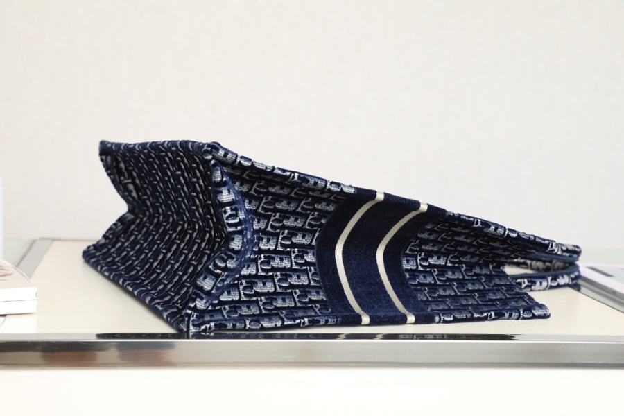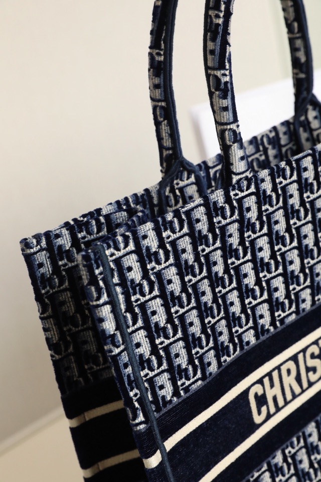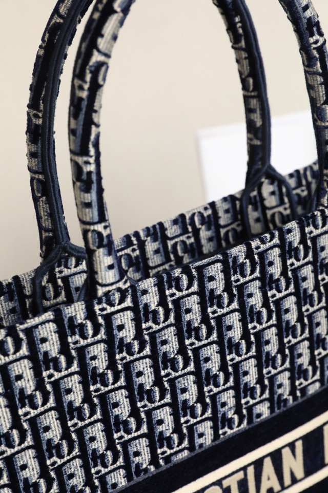 Dior Book Tote Handbags Tote Bags Blue Embroidery Velvet Fall/Winter Collection Oblique