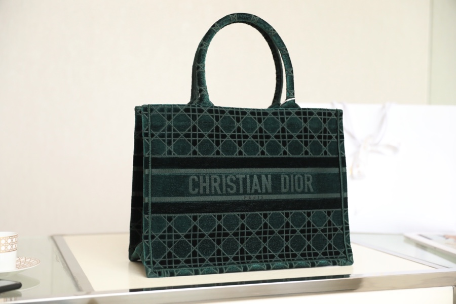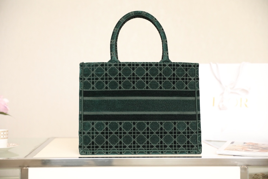 Dior Book Tote Handbags Tote Bags Dark Green Rose Embroidery Fall/Winter Collection
