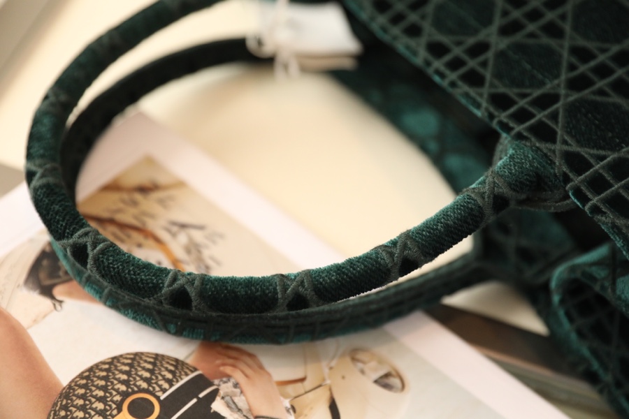 โฐReady stockโฐ๐๐๐๐New autumn and winter embroidered cannage pattern dark green velvet shopping bag DR-58