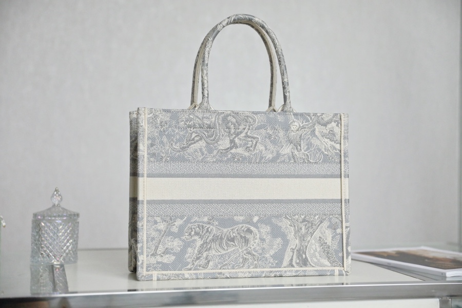 Dior Book Tote Handbags Tote Bags Grey Embroidery