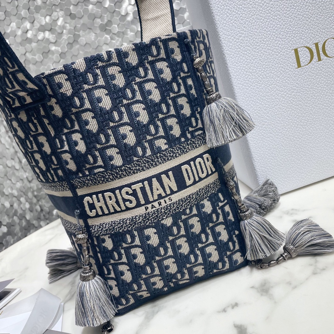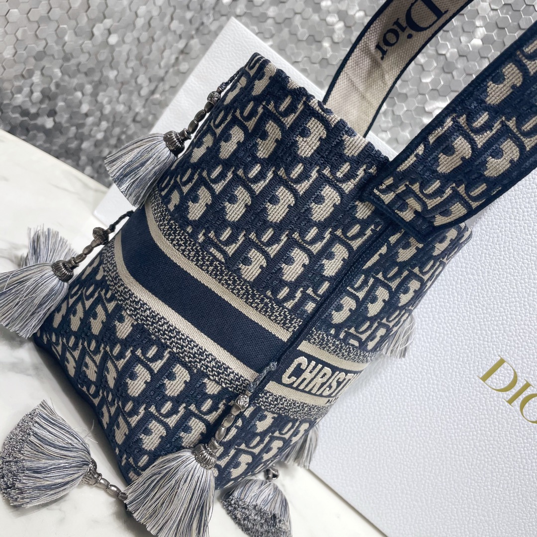 The new D-Bubble bucket bag is fashionable and modern and made a wonderful debut at the launch show. Decorated with Oblique print throughout and ‘Christian Dior’ signature on the front. With a wide shoulder strap, it can be carried by hand or on the shoulder. Handmade pompom decoration adds to the splendor.
