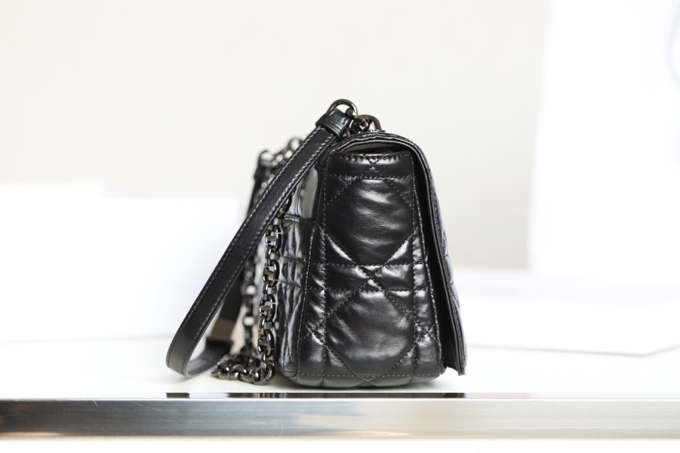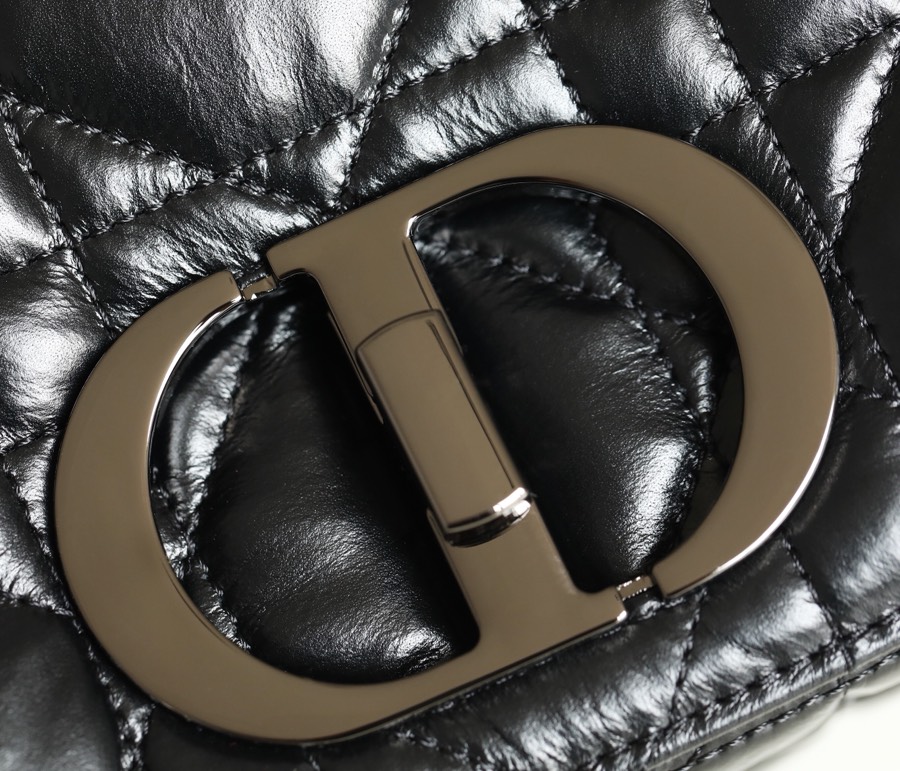 The Dior Caro handbag combines elegance and modern style. Carefully made of black cow leather, with original quilting effect and oversized cannage pattern topstitching, it is unique. The flap is finished with a metal-coated knob-style “CD” clasp, inspired by the closure of Christian Dior perfume bottles. Medium style, equipped with a detachable “CD” logo chain shoulder strap, which can be carried by hand or on the shoulder, or can be replaced with Dior’s embroidered wide shoulder strap to embellish daily looks or add a bright finishing touch to evening wear.