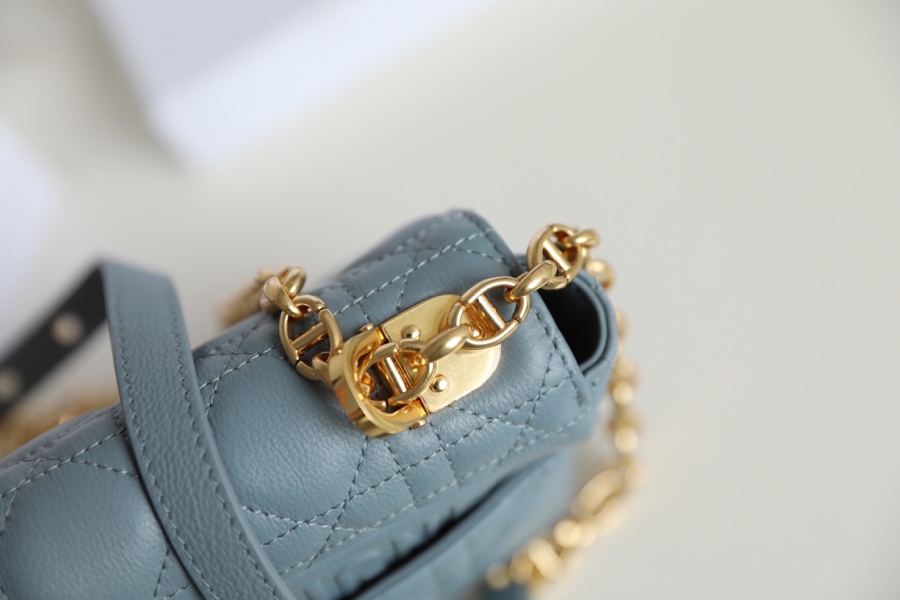 The new Dior Caro handbag is carefully crafted from sky blue cow leather, with iconic cannage pattern stitching to create quilted details. The material is soft and the flap is embellished with a metal “CD” clasp with an antique gold finish, inspired by the closure of Christian Dior perfume bottles. Small style, equipped with a detachable iconic “CD” chain link shoulder strap, which can also be replaced with a dragon embroidered wide shoulder strap, making it more elegant and fashionable. It can be easily worn whether it is a daily look or a dinner party.