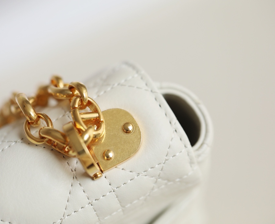 The new Dior Caro handbag is carefully made of white cow leather, with iconic cannage pattern stitching to create quilted details. The material is soft and the flap is embellished with a metal “CD” clasp with an antique gold finish, inspired by the closure of Christian Dior perfume bottles. Small style, equipped with a detachable iconic “CD” chain link shoulder strap, which can also be replaced with a dragon embroidered wide shoulder strap, making it more elegant and fashionable. It can be easily worn whether it is a daily look or a dinner party.