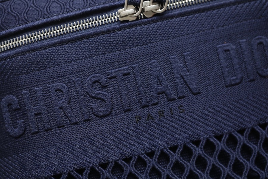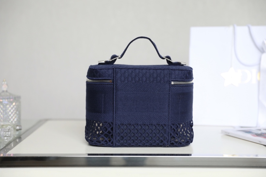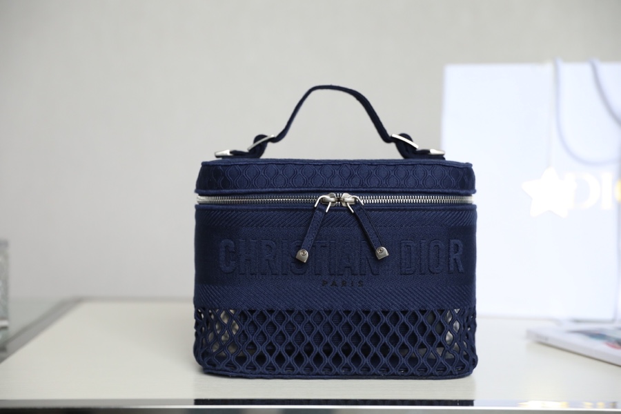 This blue DiorTravel Vanity handbag is practical and elegant. The whole body is made of mesh fabric embroidery to create a hollow effect, and the intricate techniques highlight Dior’s exquisite craftsmanship. Christian Dior logo embroidery, this handbag is an ideal daily companion. With handles and detachable shoulder strap, it can be carried by hand, shoulder or cross-body. !