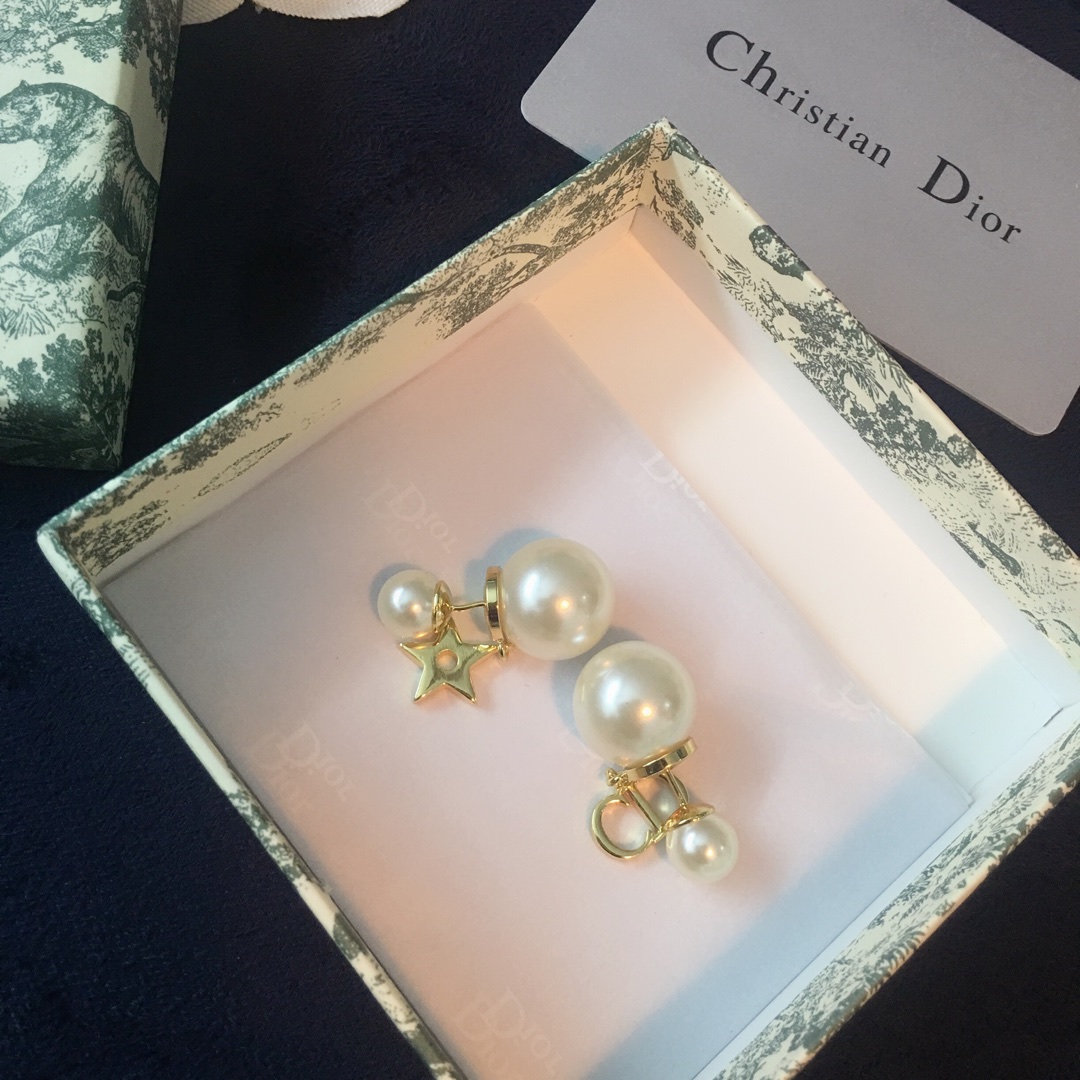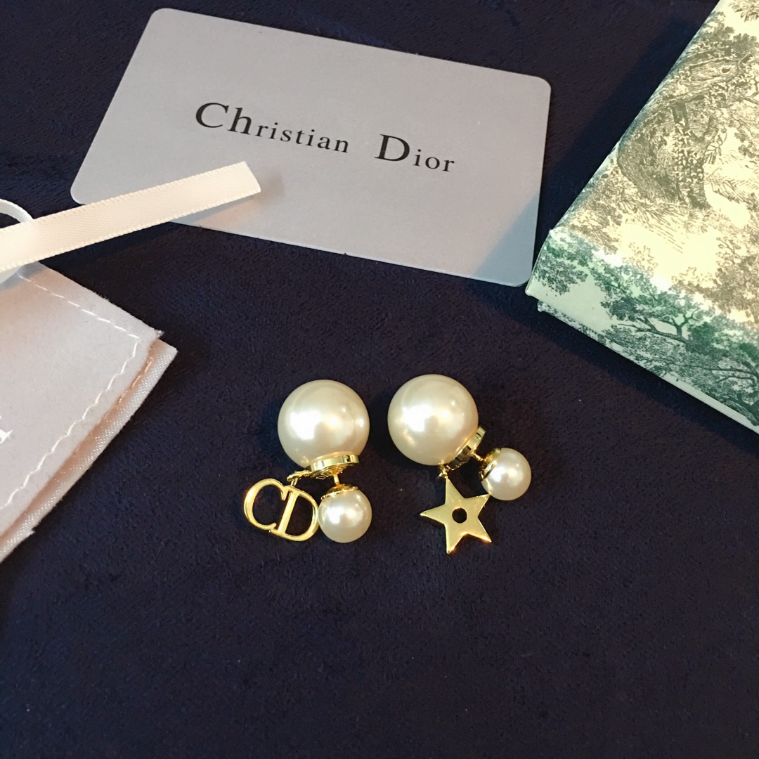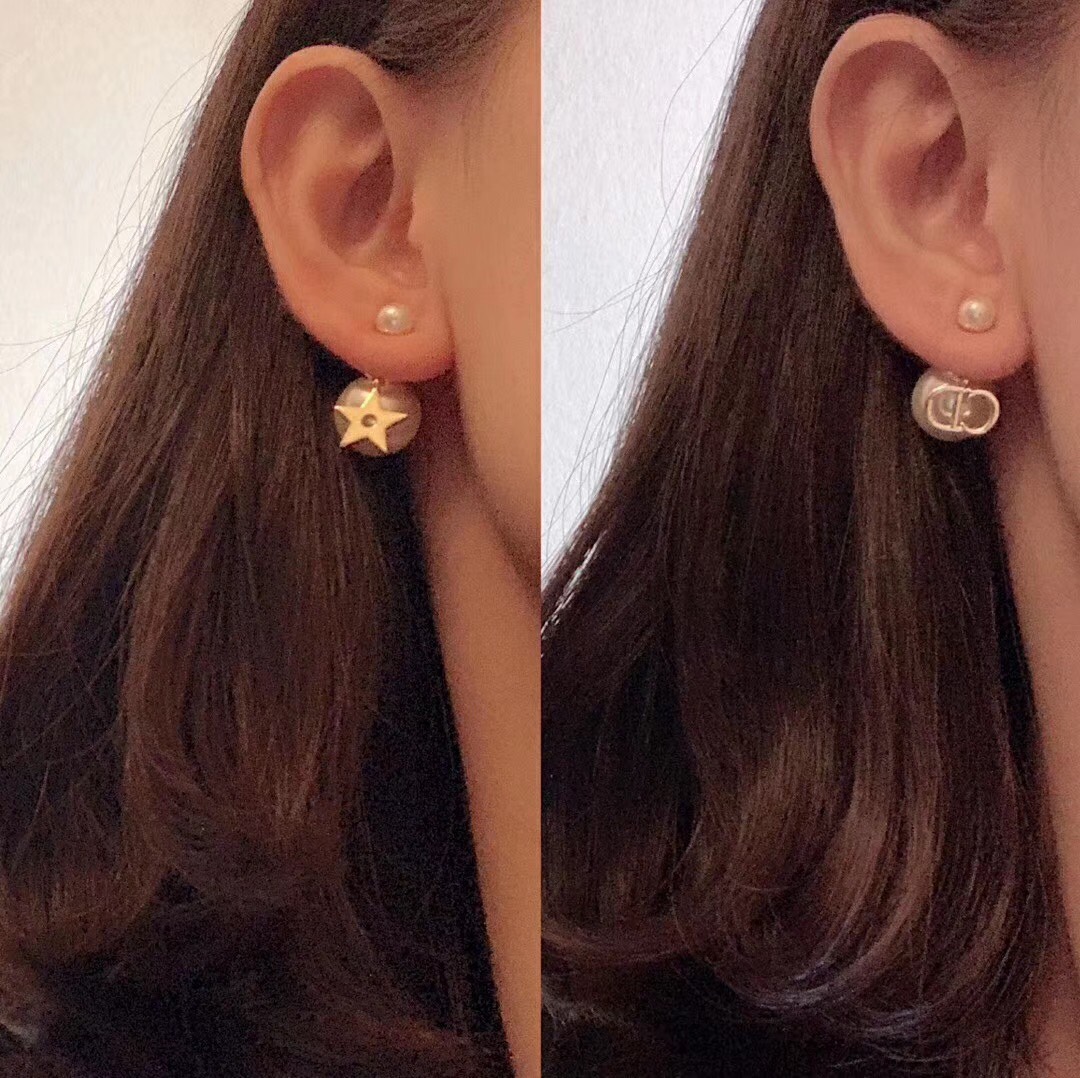 Dior 2019 new counter style star CD asymmetric size ball earrings zp consistent material with sterling silver needle