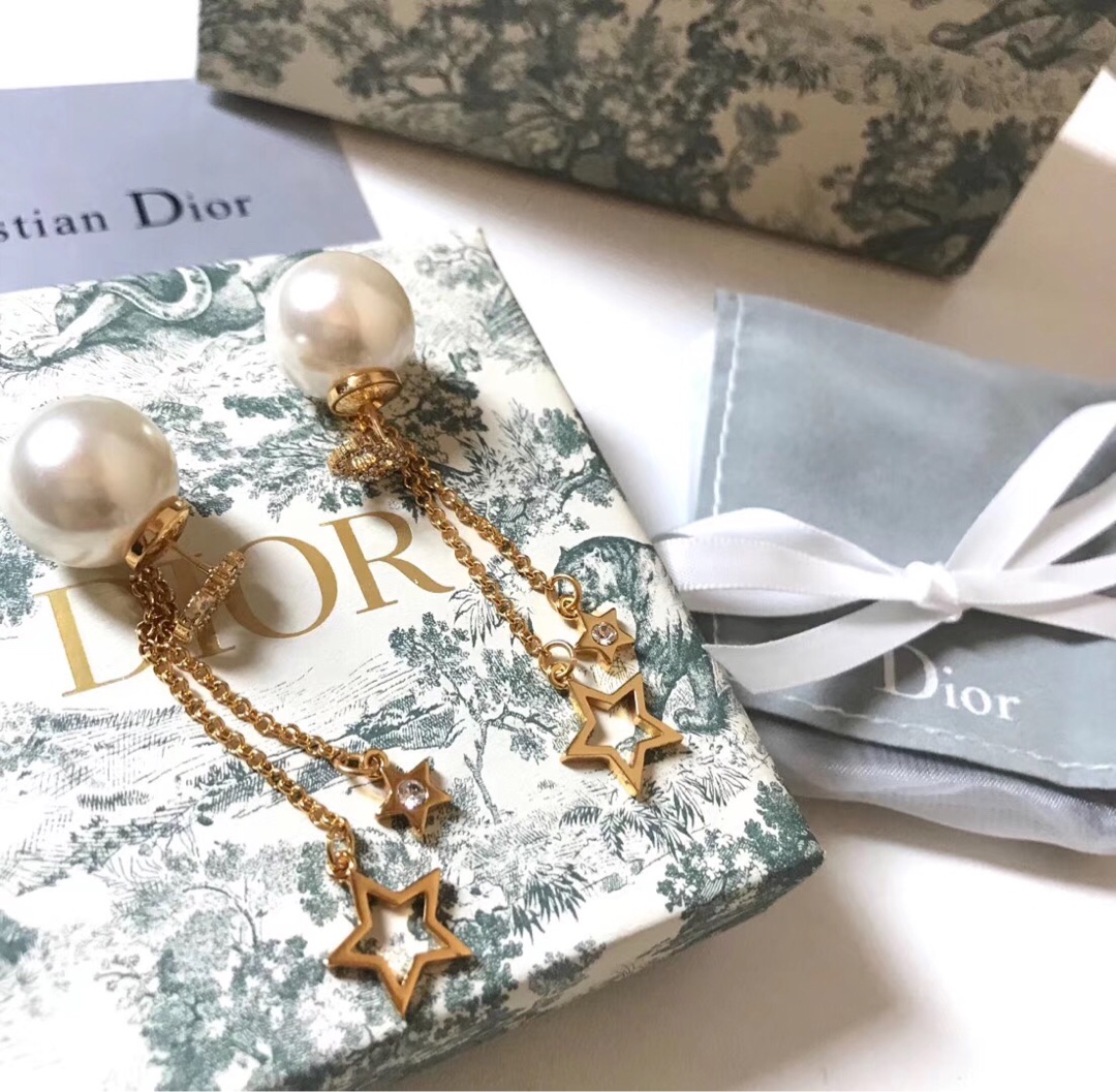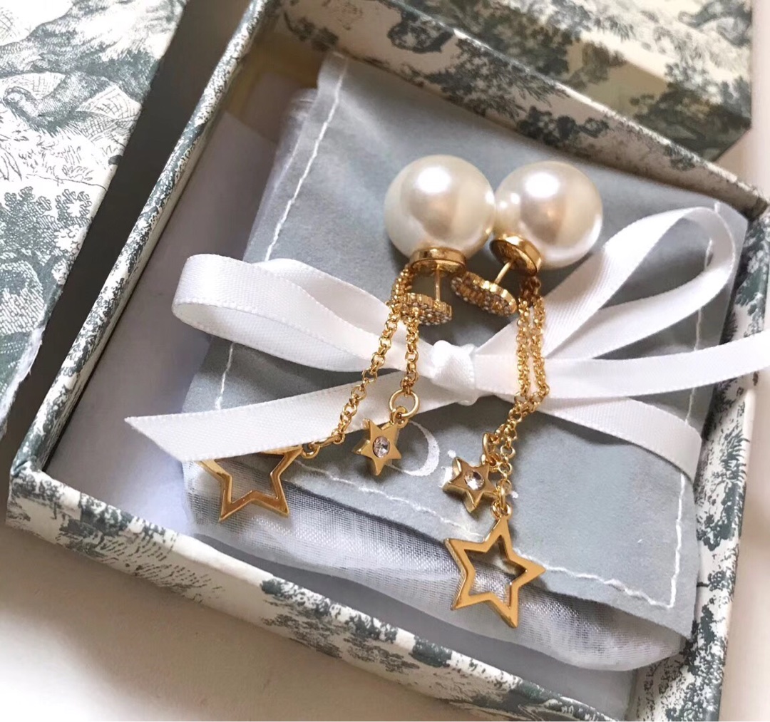 👑Dior cd Pearls Pentagram⭐️ Tassels Earrings Earrings Reinterpret the brand logo in a fun way. Decorate the edges of the pearls with tassels and golden beads. Geometric beauty runs between the ears. Elegant and generous with a touch of fashion and caution.