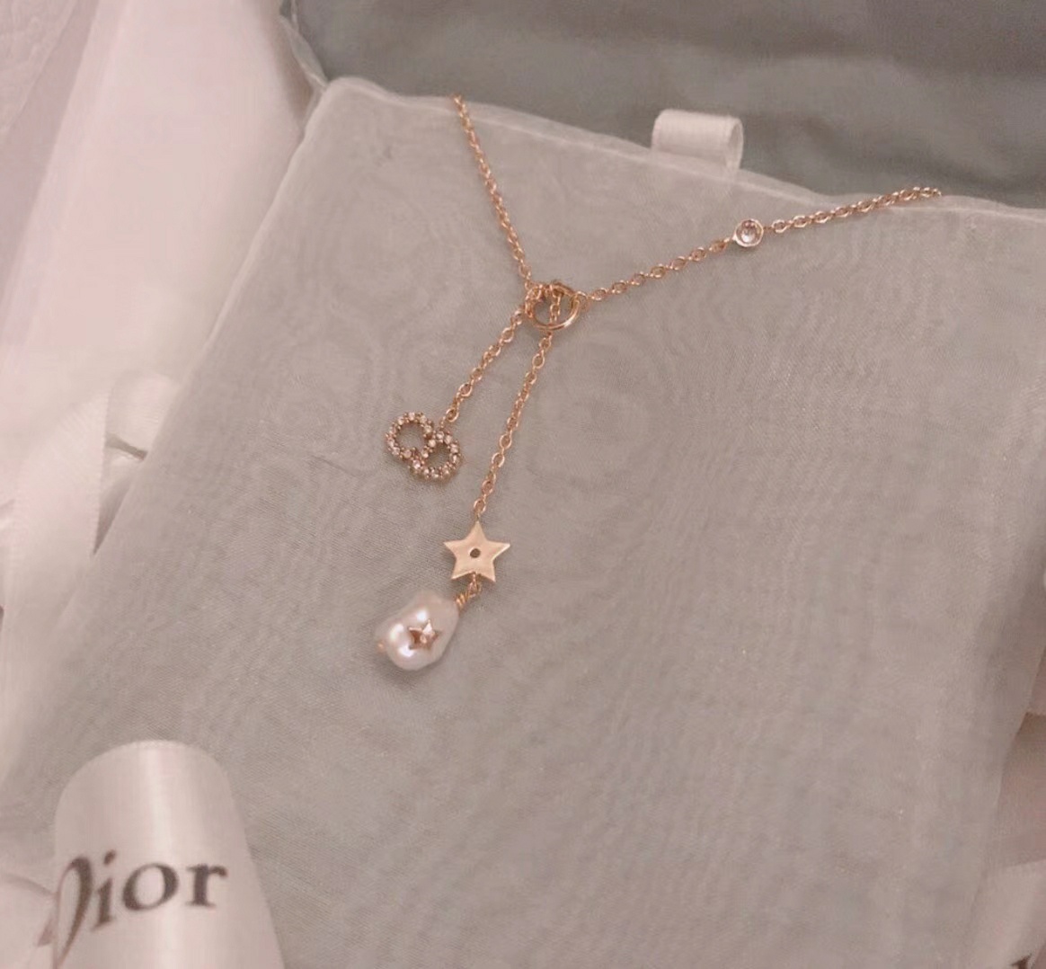 👑🔺DIOR Dior CD letters stars✨tassels pearl necklace🔺counter consistent brass material hot model shipped unique design retro avant-garde beauty must-have special-shaped natural pearl tassel necklace, elegant and versatile