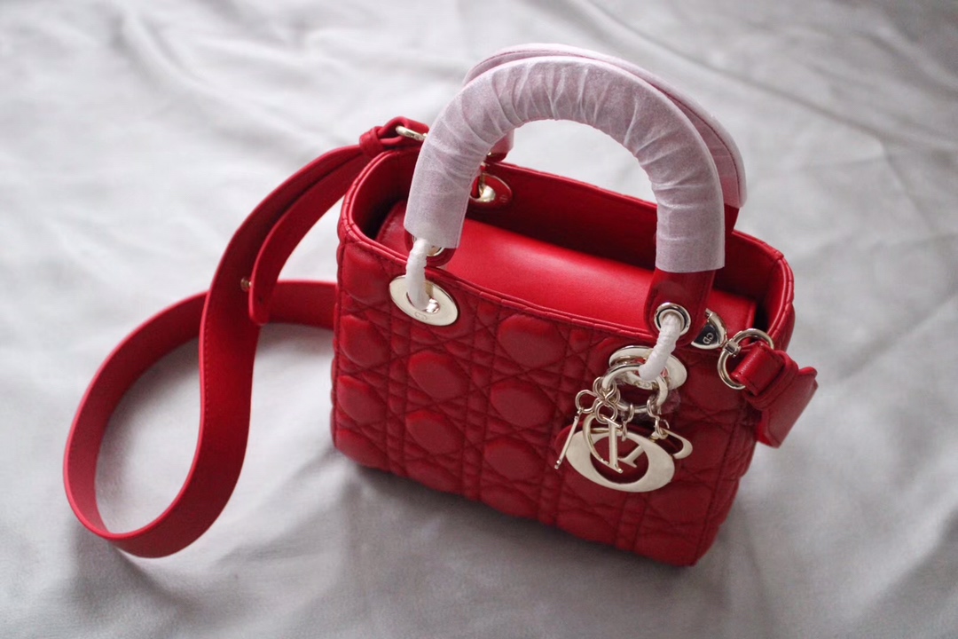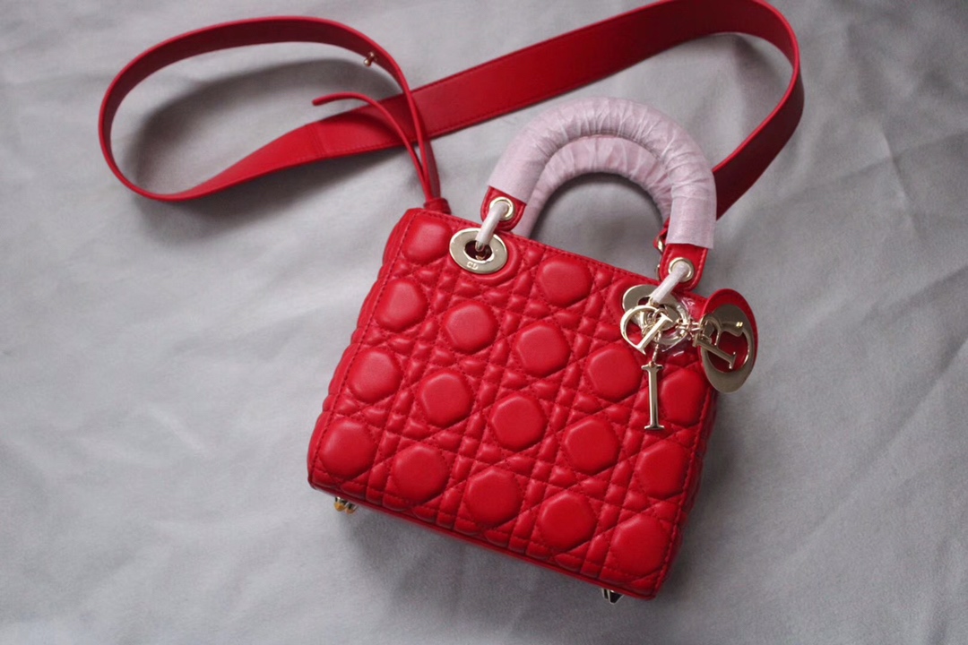 Dior Lady Handbags Crossbody & Shoulder Bags Red Lambskin Sheepskin