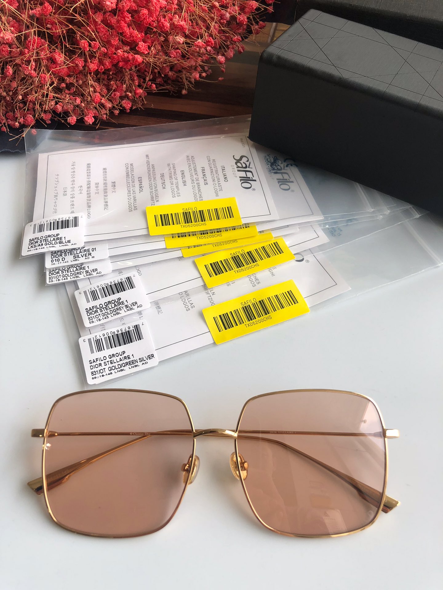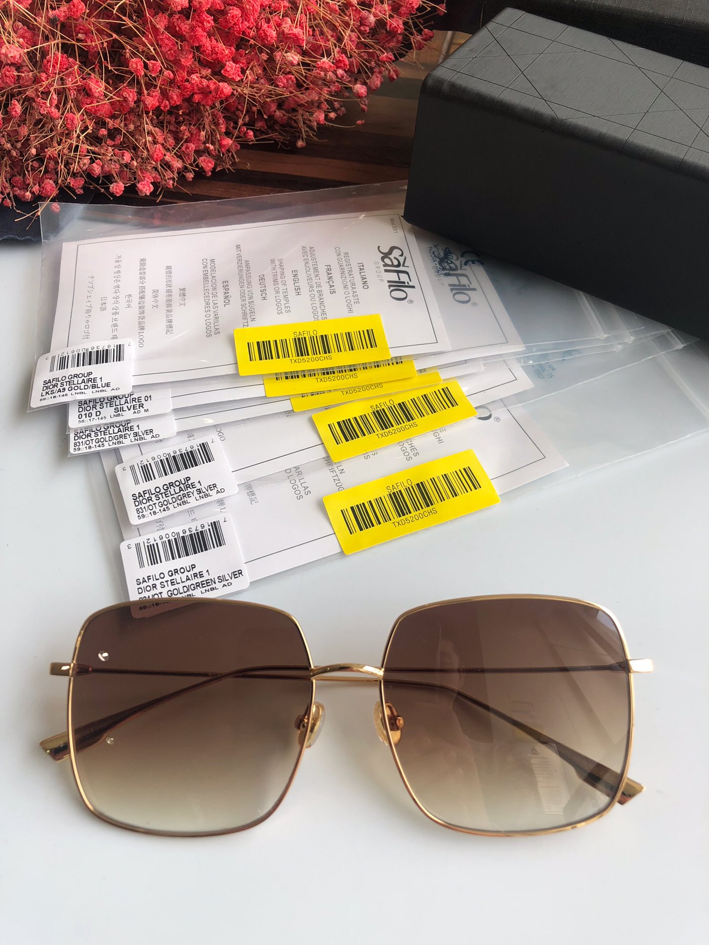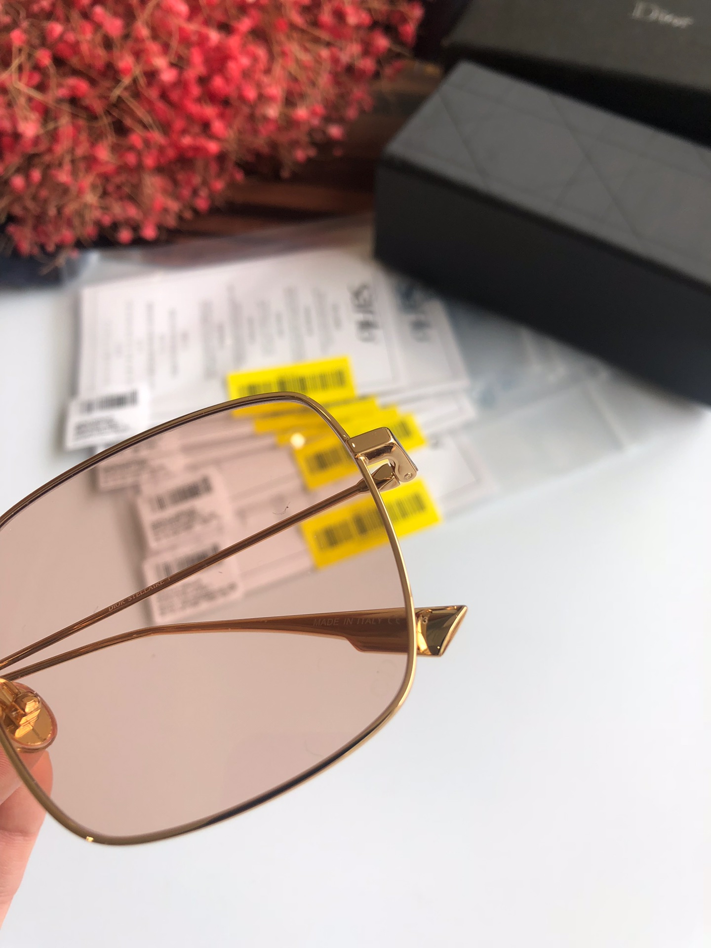 440💰High quality factory direct sales ready stock Dior Stellairel 59*17-145. The “Dior Stellaire 1” sunglasses from the Winter Collection show feature a voluminous square shape and lightweight texture. Ultra-slim frames in gold-tone metal accentuate the nearly flat lenses. Internet celebrity’s favorite glasses👓