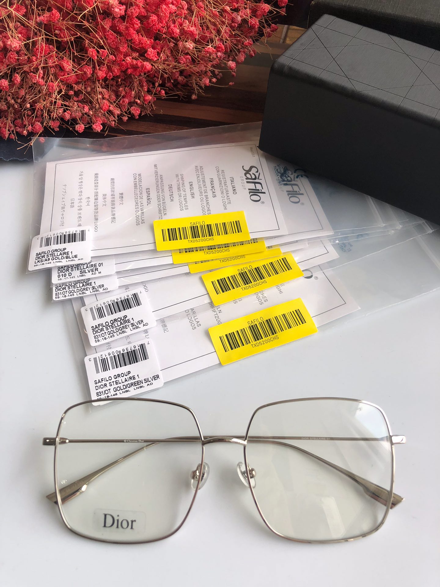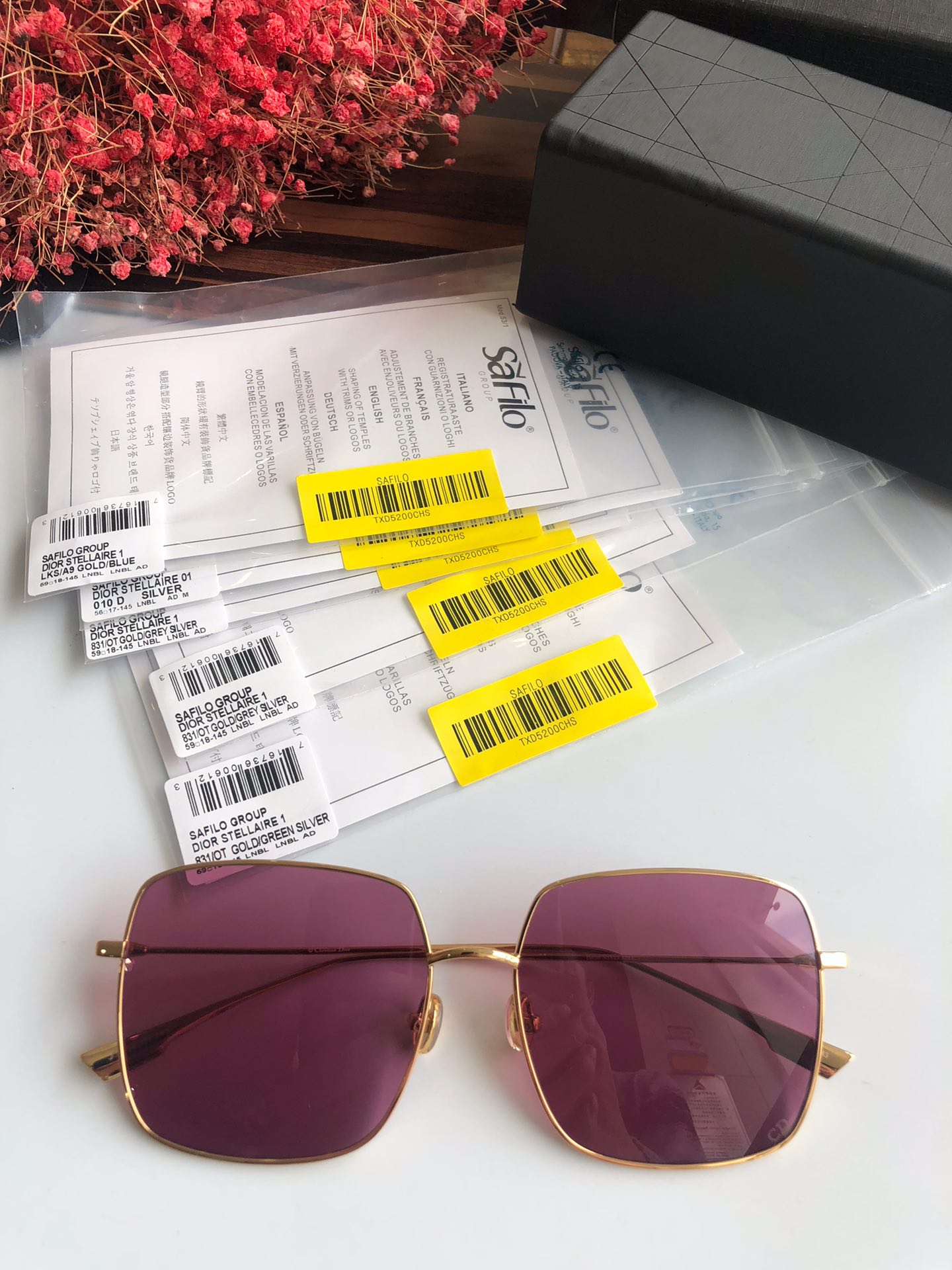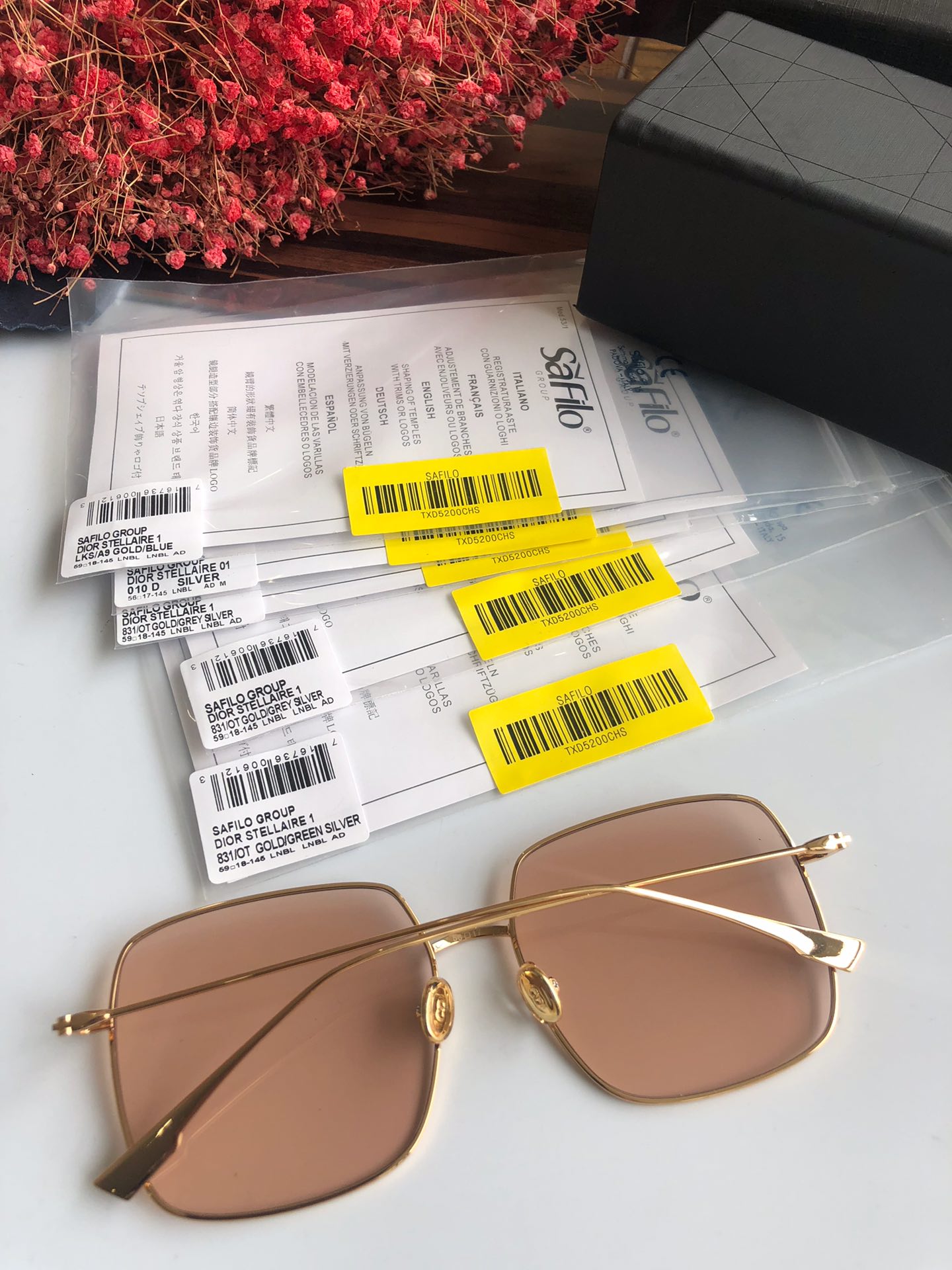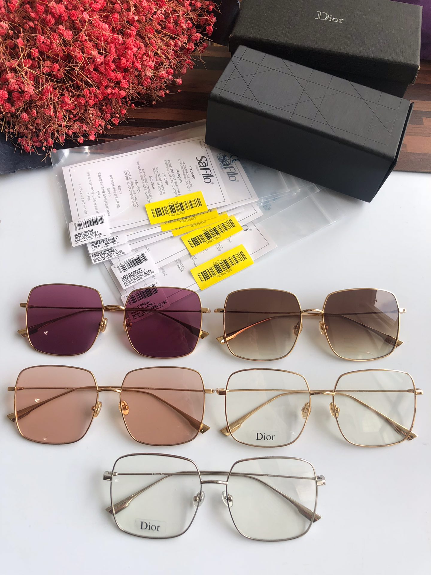440💰High quality factory direct sales ready stock Dior Stellairel 59*17-145. The “Dior Stellaire 1” sunglasses from the Winter Collection show feature a voluminous square shape and lightweight texture. Ultra-slim frames in gold-tone metal accentuate the nearly flat lenses. Internet celebrity’s favorite glasses👓