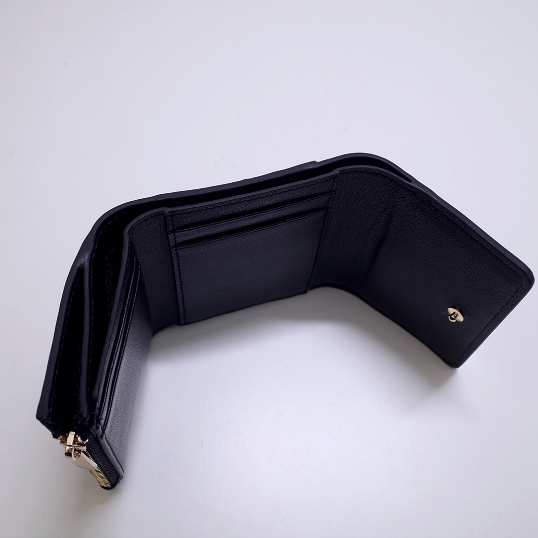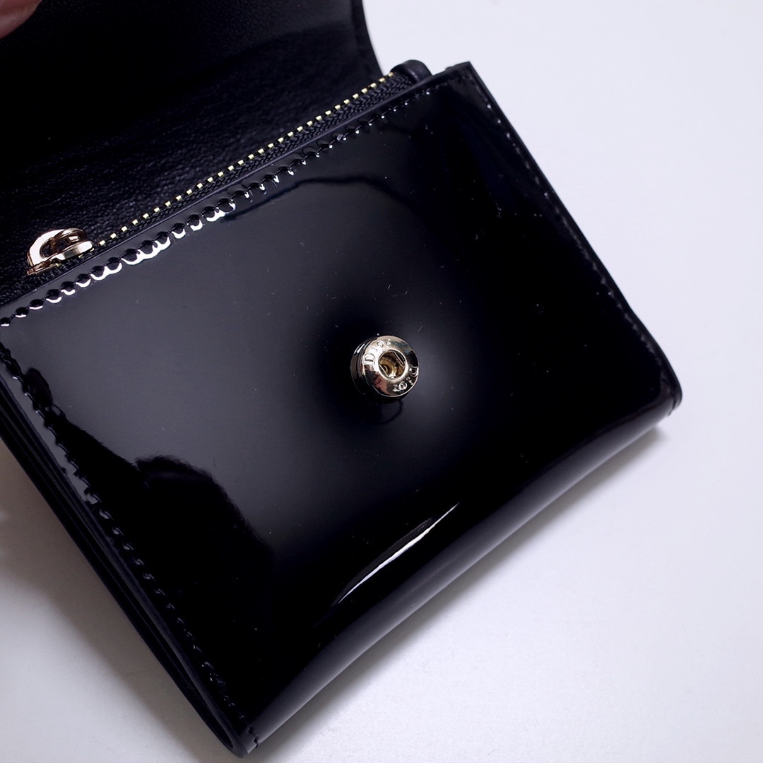 DI0R Montaidne patent leather tri-fold wallet, equipped with ultra-exquisite CD hardware buckle, relatively durable patent leather, durable and high-end, with multiple card slots and an internal compartment. Nowadays, small bags are in the market, and everyone must have one [haha]