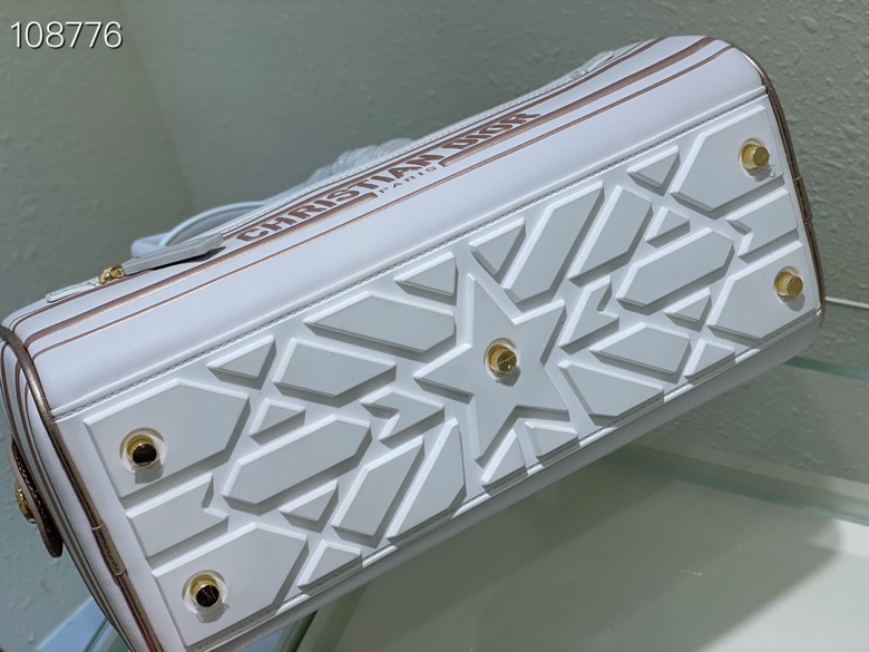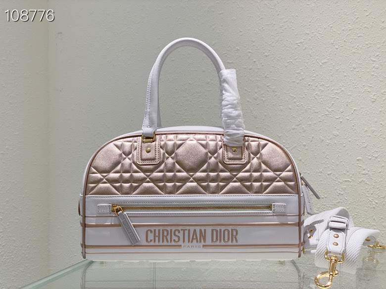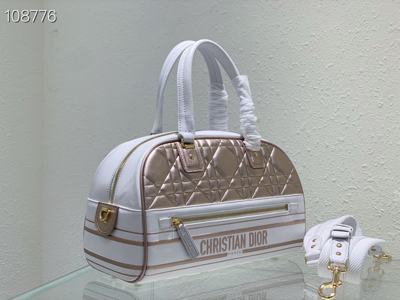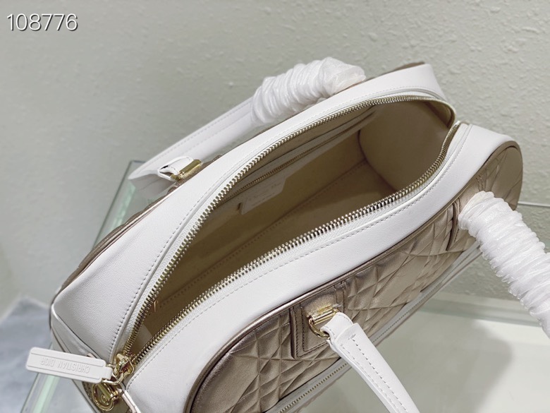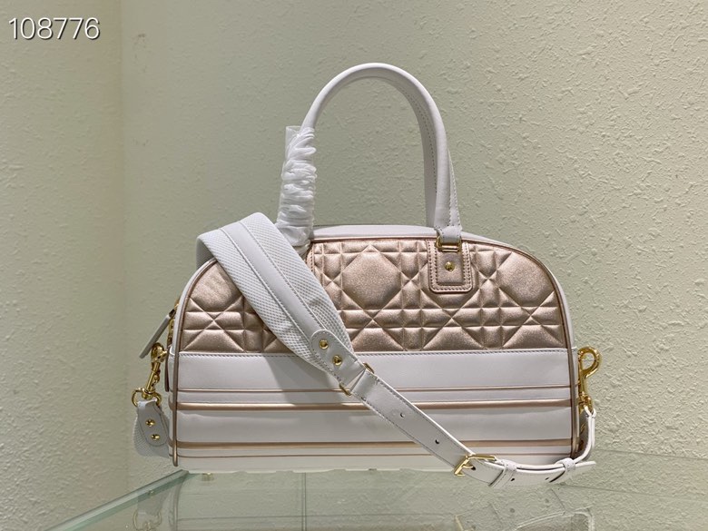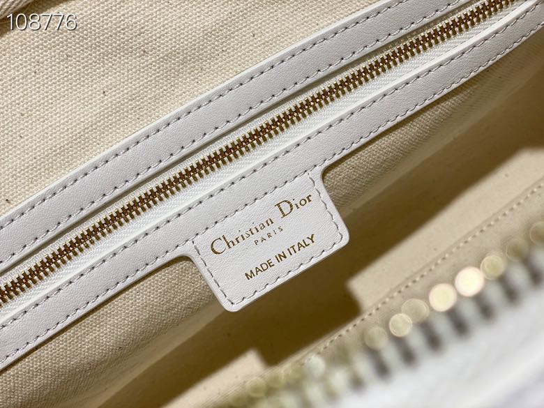 Online Shop Dior Bags Handbags Gold White Embroidery Cowhide Fabric Rubber Sweatpants